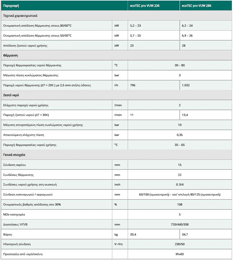 Οι επιτοίχιοι λέβητες ecoTEC pro έχουν όλες τις δυνατότητες που απαιτούν οι ανάγκες σας και χάρη στο μικρό μέγεθός τους και τον τέλειο σχεδιασμό τους, μπορούν να τοποθετηθούν άμεσα σχεδόν σε οποιoδήποτε χώρο. Επιπλέον με την τεχνολογία της συμπύκνωσης μπορείτε να επωφεληθείτε στο έπακρο, συνδυάζοντας την απόλυτη άνεση με τη μέγιστη οικονομία.